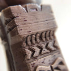 Atlantean figures are carved stone support columns or pillars in the shape of fierce men in pre -hispanic Mesoamerica. This particular model is based on the 4 columns found atop the Pyramid of Quetzalcoatl / Temple B in Tula, central Mexico.